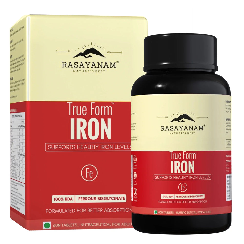 يساعد مكمل راسايانام ترو فورم آيرون، الغني بالعناصر الغذائية الداعمة، على مكافحة نقص الحديد، والحد من التعب، ودعم نقل الأكسجين في الجسم. وهو خالٍ من الإضافات غير الضرورية، ما يجعله مثالياً للاستخدام اليومي لتعزيز الطاقة والقوة والصحة العامة على المدى الطويل.