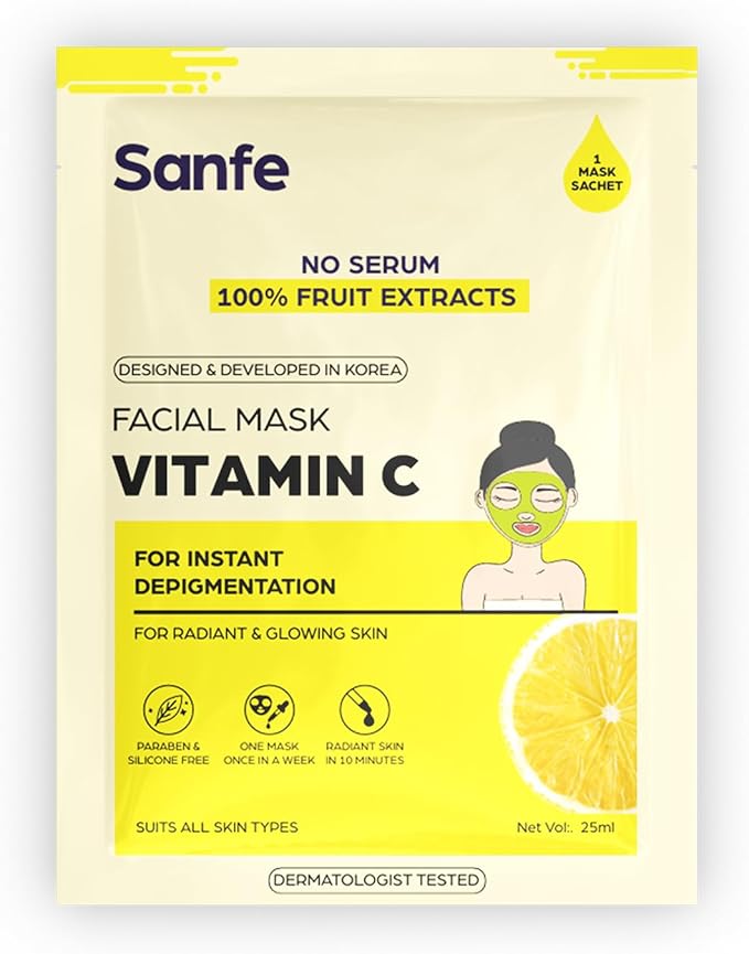 Brighten, even, and refresh your skin instantly with the Sanfe Instant Depigmentation Vitamin C Facial Mask. This powerful sheet mask is infused with high-potency Vitamin C, niacinamide, and skin-brightening botanicals that target dark spots, pigmentation, tanning, and dullness in just one use. It delivers a surge of hydration and glow, leaving your skin radiant, smooth, and visibly more even-toned.