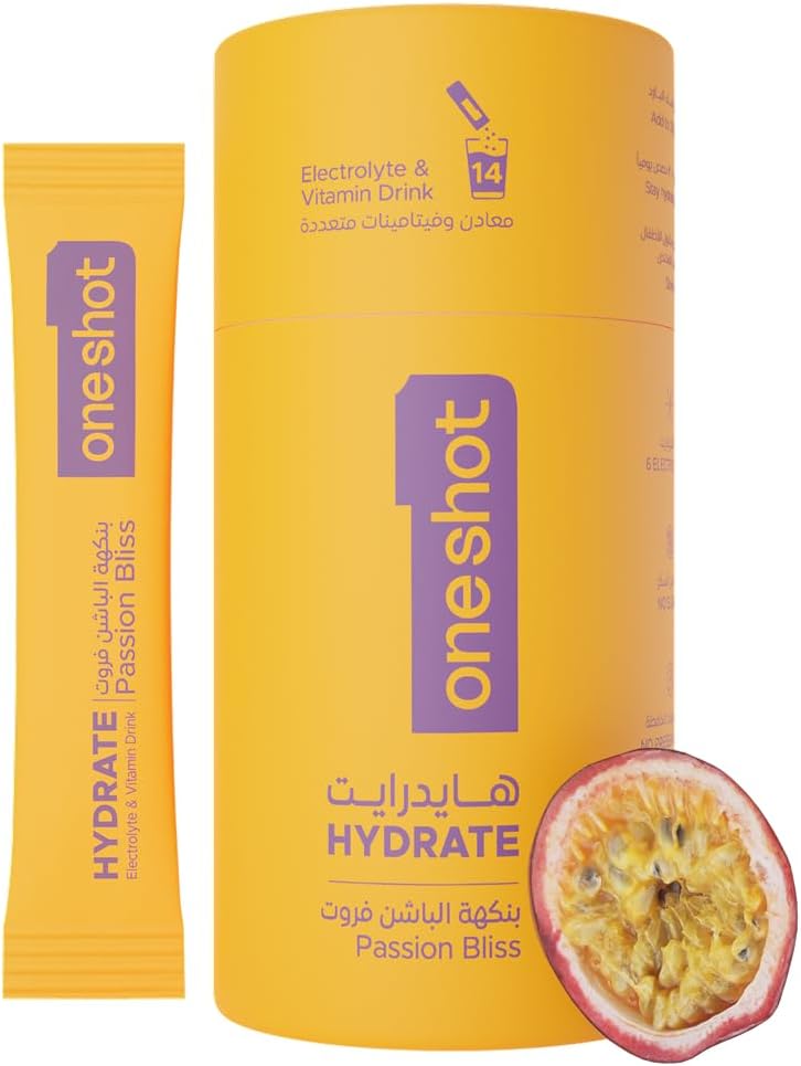 OneShot Hydrate Passion Bliss is a refreshing electrolyte hydration mix designed to replenish essential minerals, restore energy, and keep you hydrated throughout the day. With a tropical passion-fruit inspired flavor, it’s perfect for athletes, fitness enthusiasts, or anyone needing quick and effective hydration.