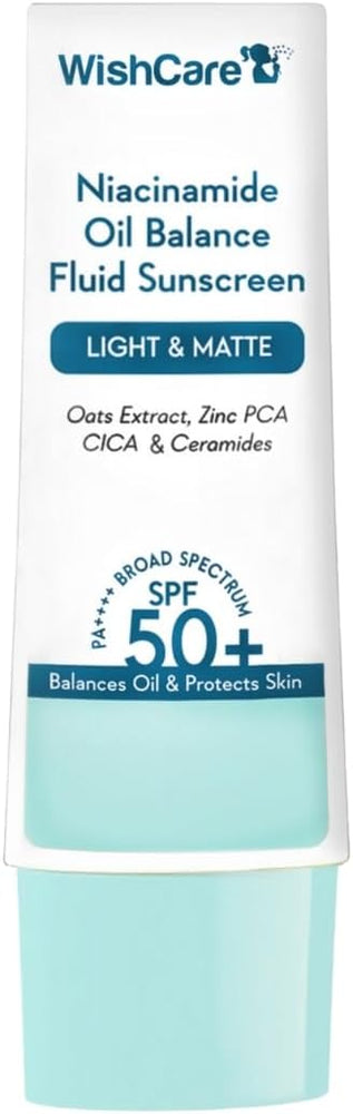 WishCare Niacinamide Oil Balance Sunscreen is a lightweight, matte-finish sun protection formula crafted especially for oily and combination skin types. With broad-spectrum SPF 50 PA++++ protection, it shields your skin from harmful UVA/UVB rays while balancing oil production and preventing sun-induced damage.